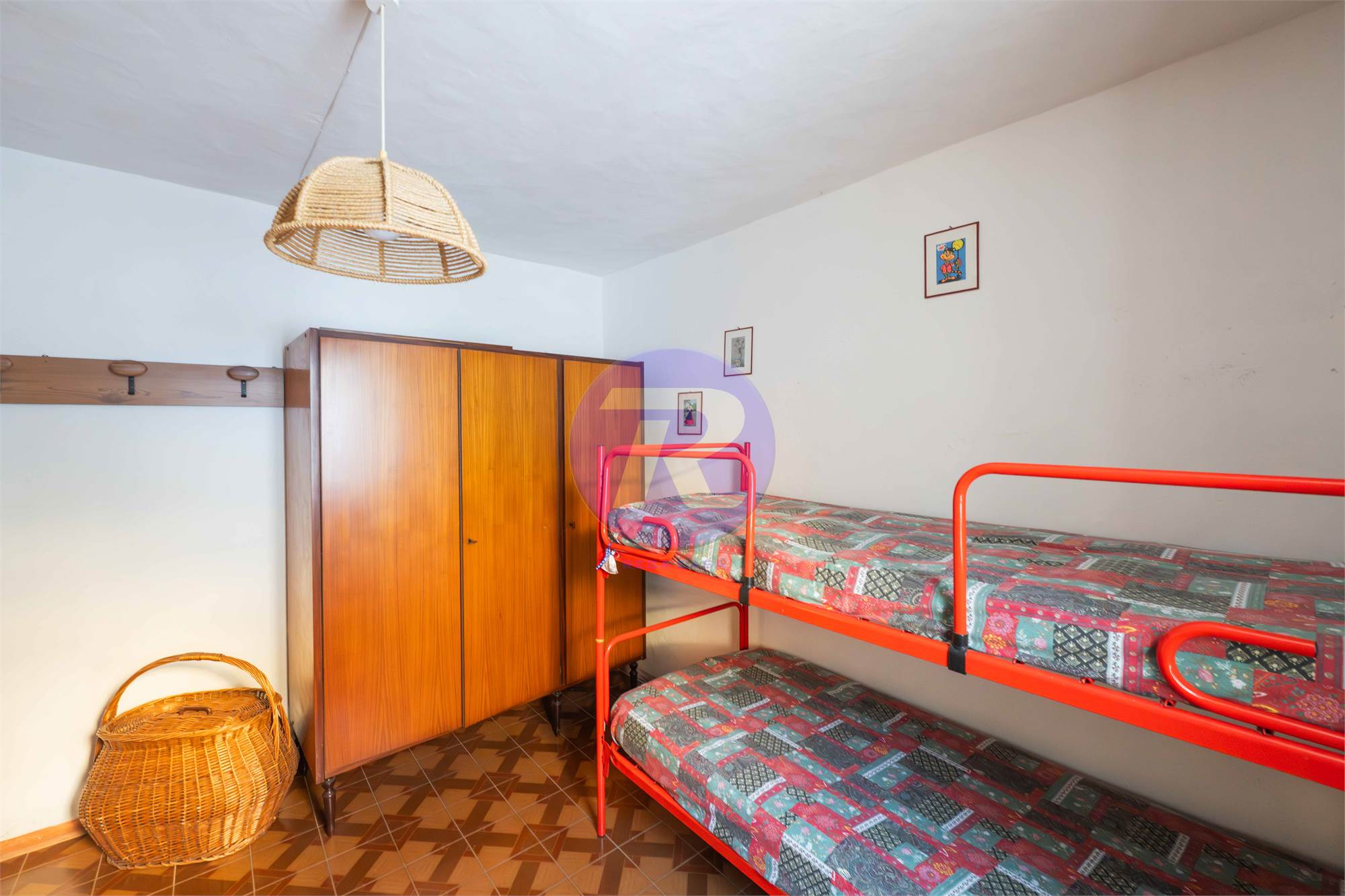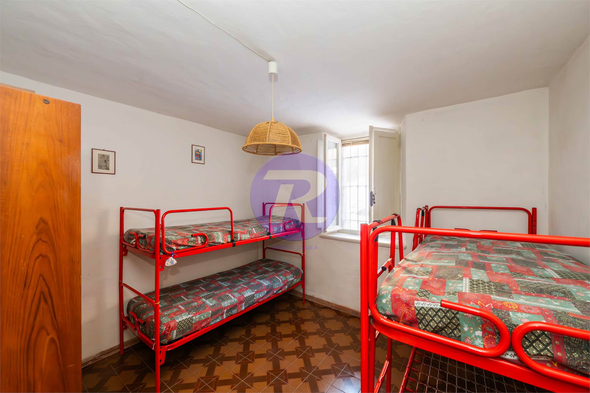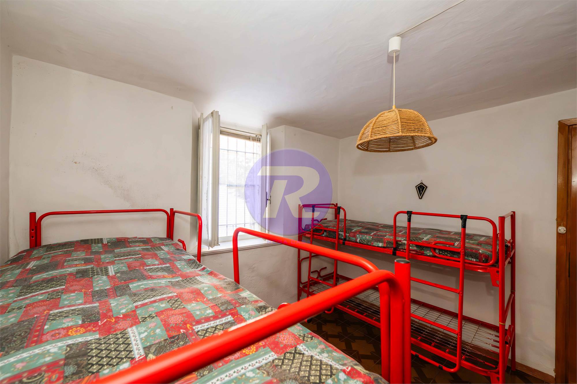 Salendo al piano superiore, la zona notte offre due camere e un bagno, ambienti intimi e confortevoli, perfetti per rilassarsi dopo una giornata all’aria aperta.