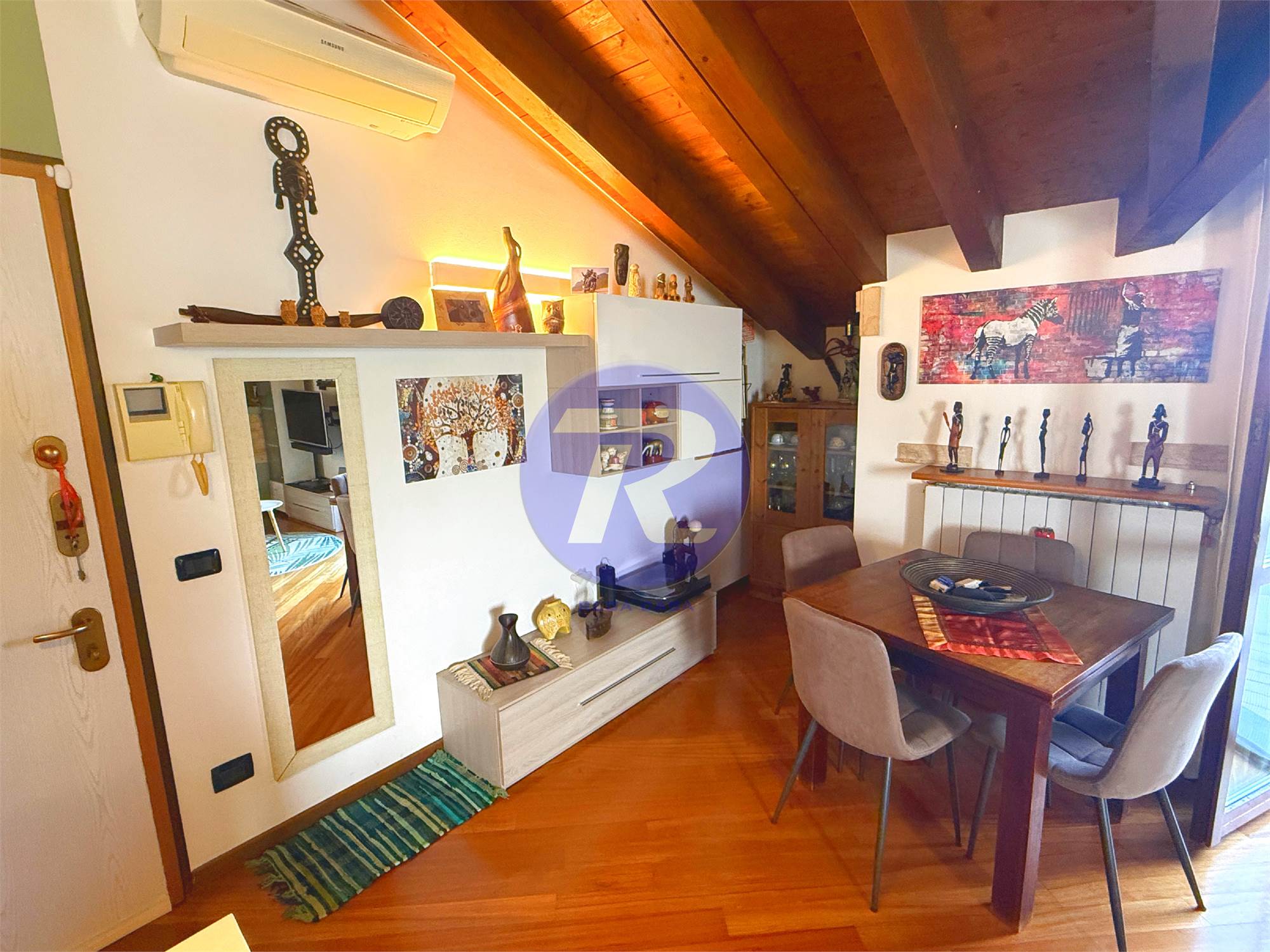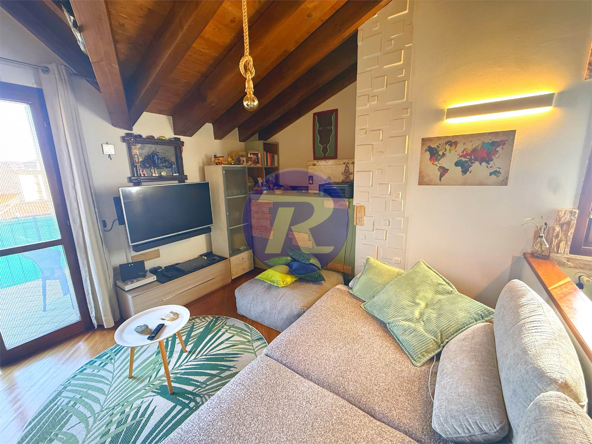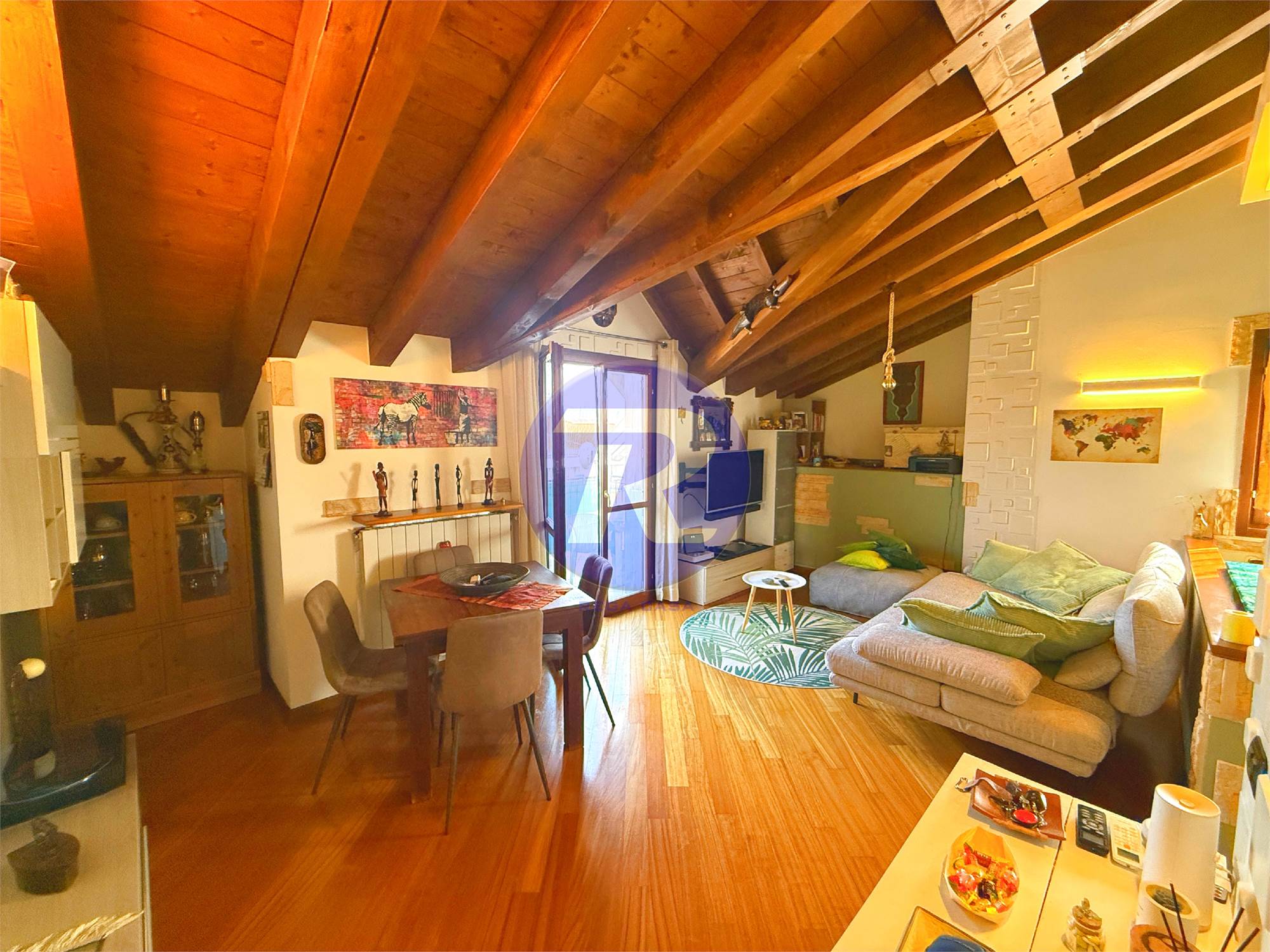 In zona residenziale tranquilla e ben servita di Almè, proponiamo in vendita splendido appartamento trilocale posto all’ultimo piano, caratterizzato da ambienti caldi e accoglienti con travi in legno a vista.