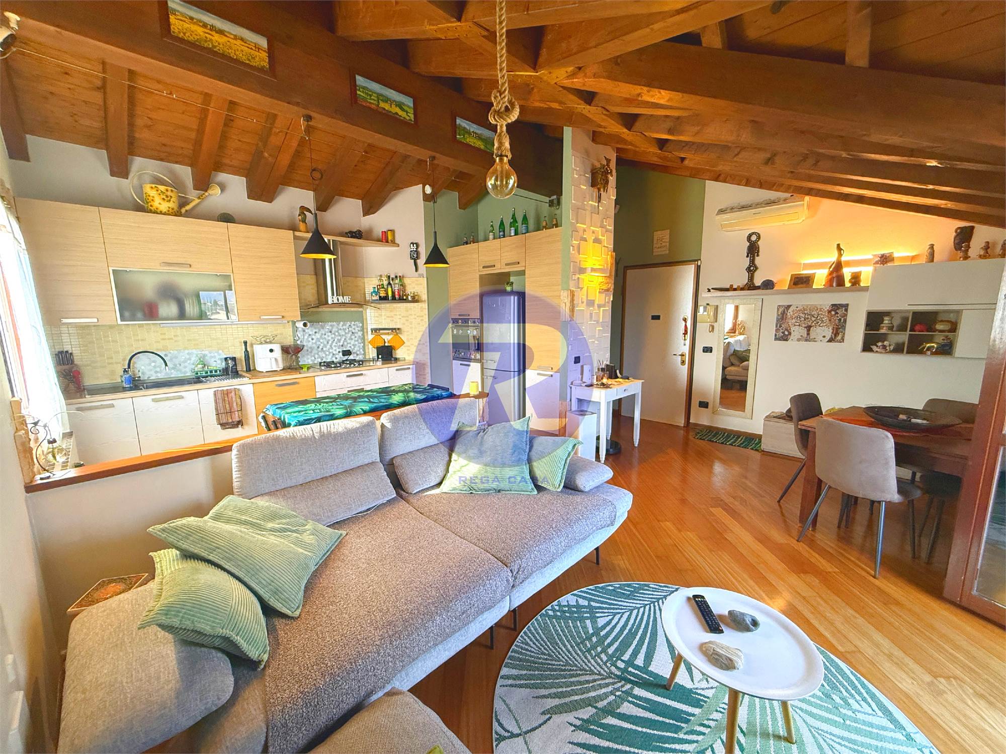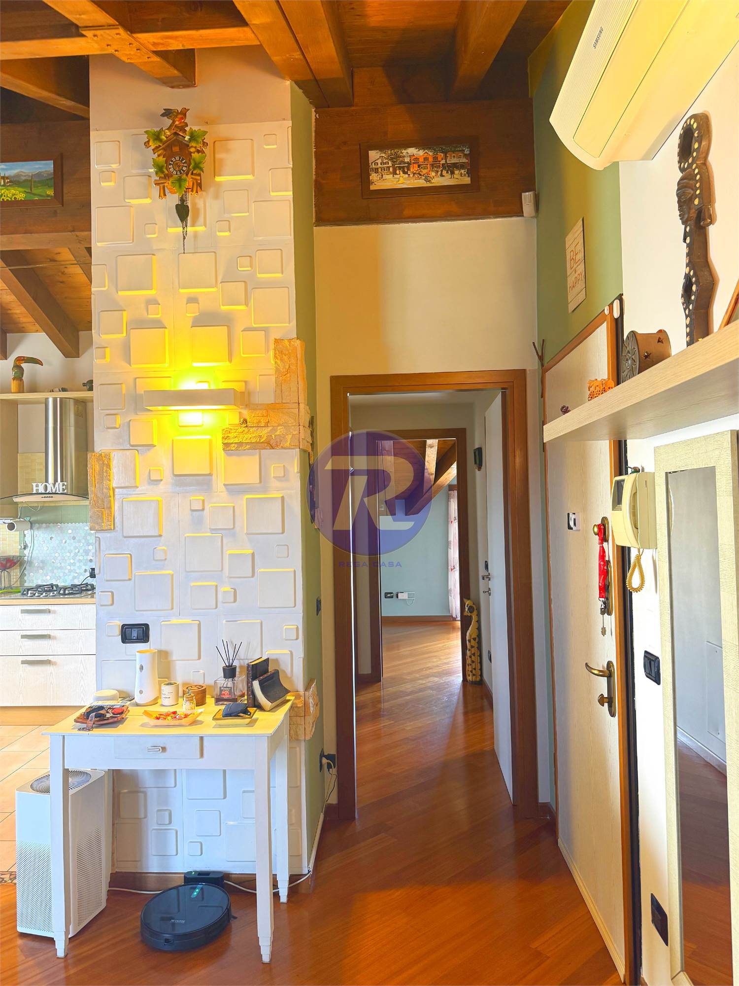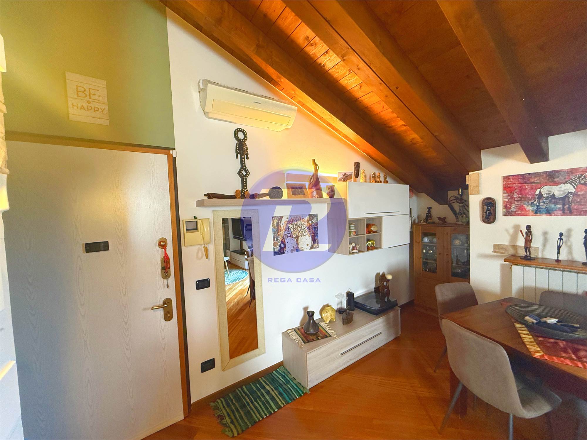 In zona residenziale tranquilla e ben servita di Almè, proponiamo in vendita splendido appartamento trilocale posto all’ultimo piano, caratterizzato da ambienti caldi e accoglienti con travi in legno a vista.